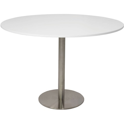 Rapidline Circular Meeting Table 600Mm Dia Disc Base Natural White Stainless Steel