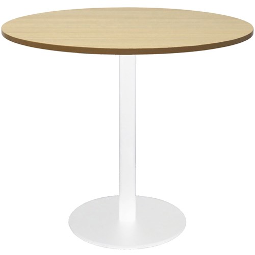 Circular Base Meeting Table with flat Disc Base 900mm Diameter x 755mm H Overall 540mm Dia Disc Base Plate x 725mm H x 60mm Dia Column E1 Rated Melamine Board Top Adjustable Levelling Feet