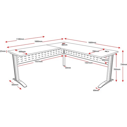 E0 rated Enviroboard Top with Cable Entry Holes for cable management Metal Powder coated Leg Cable Tidy in Leg Adjustable Feet Perforated Metal Modesty Panel 5 Years Manufacturers Warranty 5 Years Manufacturers Warranty
