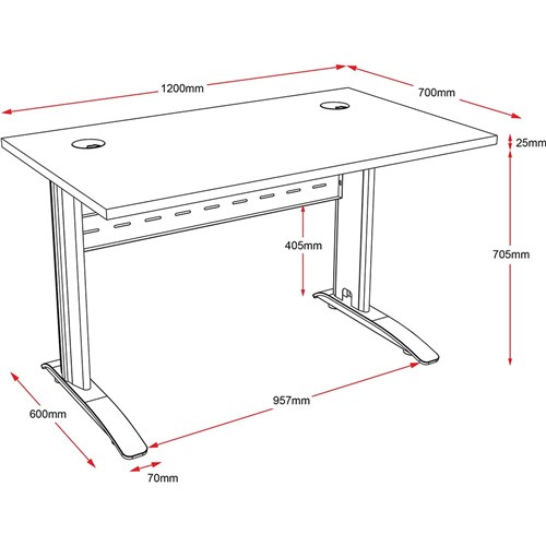 730mm H x 1800 mm W x 1800 mm D One Piece Top with Cable Entry Holes for cable management E0 rated Enviroboard Cable Tidy in Leg Adjustable Feet Perforated Metal Modesty Panel 5 Years Manufacturers Warranty