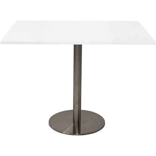 Rapidline Square Top Table 900X900Mm Circular Base Natural White Stainless Steel