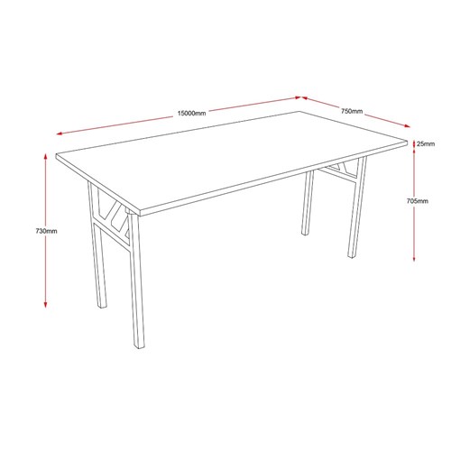 30mm Strong Frame. Suitable for Heavy Duty Use. Folding Leg Mechanism. With E0 safety standard rated melamine board. Folded height of 95mm. Unit Dimension:730mm H x1500 mm W x 750 mm D. 3 Year Manufacturer's Warranty.
