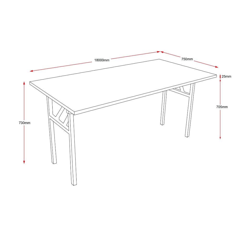 30mm Strong Frame. Suitable for Heavy Duty Use. Folding Leg Mechanism. With E0 safety standard rated melamine board. Folded height of 95mm. Unit Dimension:730mm H x1800 mm W x 750 mm D. 3 Year Manufacturer's Warranty.