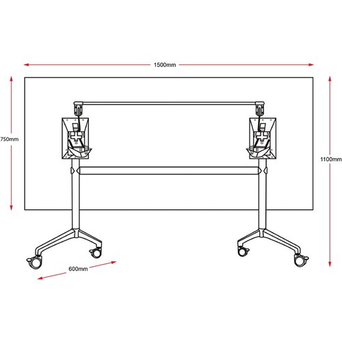 The Typhoon is a high quality flip top table is easy and safe to operate with a 2 hand handle mechanism to prevent accidental operation and locking castors. With a black frame and polished aluminium feet Wastes no space when not in use. Locking castors. With E0 safety standard rated melamine board. Folded Size of TFT1575 : 1100mm H x 600mm D x 1500mm. Unit Dimension:750mm H x750 mm W x 1500 mm D. 5 Year Manufacturer's Warranty.