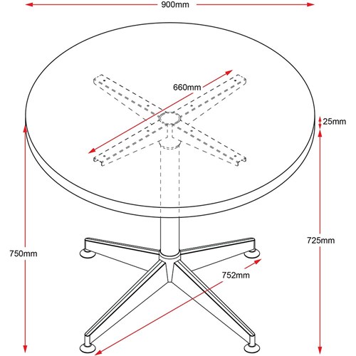 The Typhoon meeting table has a black stem and polished aluminium stable 4 star base. Adjustable feet. With E0 safety standard rated melamine board. Unit Dimension:750mm H x900 mm W x 900 mm D. 5 Year Manufacturer's Warranty.
