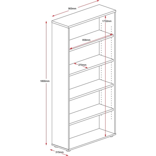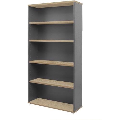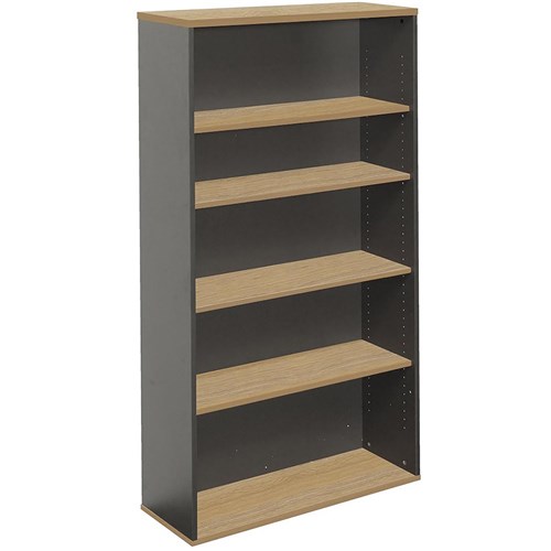 • Rapidline Worker Bookcase 4 Shelves 1800Hx900Wx315Mmd Natural Oak And Ironstone