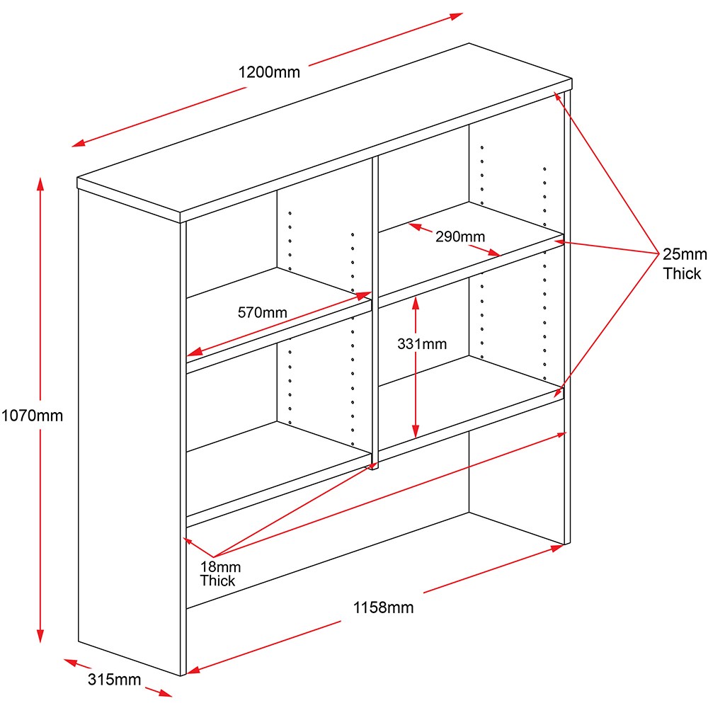 Rapidline Worker Desk Hutch 4 Shelves 1070Hx1200Wx315Mmd Natural White And Ironstone