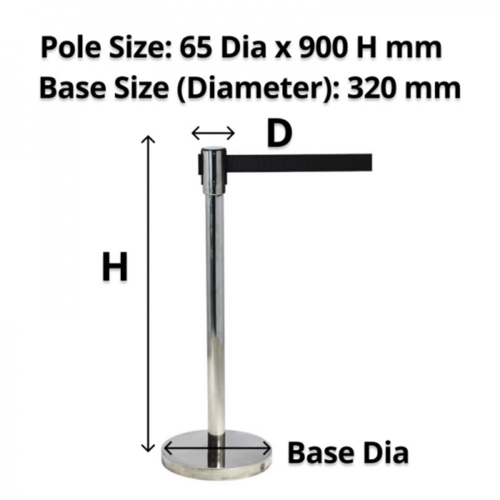 201 grade stainless steel, indoor use only. Four way connection. 2m internal black nylon belt. Base weight: 5.5kg.