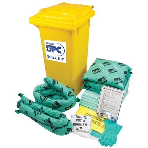 Complies to ISO 14001 Ideal for the clean-up of aggressive liquids and chemicals up to 120L. Suitable for virtually all chemical spills and will also absorb the general purpose, and oil only spill types also availble from Seton. Comes in a handy weatherproof 120L bin