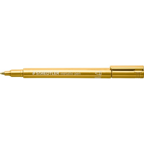 Staedtler® vibrant metallic markers. Smooth writing first time, everytime without shaking or pumping. Perfect for certificate writing, scrapbooking and greeting cards. Water based.
