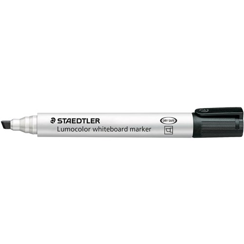 Black marker can be dry-wiped from whiteboards and surfaces such as glass and porcelain without leaving a trace Airplane-safe Fast drying, low odour and with convenient clip cap Dry safe Stand-up staedtler box converts to convenient desk set Refillable xylene and toluene free ink Polypropylene barrel and cap guarantee long service life Chisel tip line width approximately 2 - 5mm
