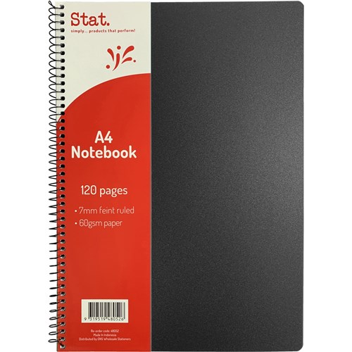 Stat Notebook A4 60Gsm 7Mm Ruled Pp Black 120P