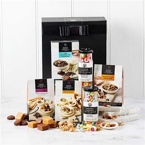 When it comes to Australian made confectionery, it doesn't get any more delicious than the Sweet Tooth Emporium Gift Hamper from Random Harvest. Each of our sweet treats is made in small artisan batches for the finest in quality each and every time. Our premium confectionery range isn't available in supermarkets, making this sweet gift hamper even more special. Our entire range is 100% Australian made and backed by our brilliant customer service and 100% Australian family owned business. We care about your recipients just as much as you do. The Sweet Tooth Emporium Gift Hamper Includes: Tiny Rocks 170g, Assorted Fruit Rock 170g, Assorted Fudge 125g, Peanut Crunch 125g, Triple Choc Cookies 100g, Roasted Peanuts with Sea Salt 120g, presented in a gorgeous Hamper Box