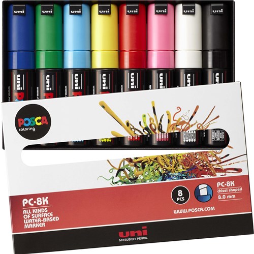 Uni-Ball Posca Poster Marker 8.0Mm Chisel Tip Pack Of 8