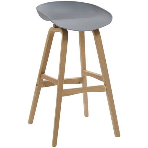 Virgo Bar Stool With Oak Timber Frame And Polypropylene Grey Shell Seat