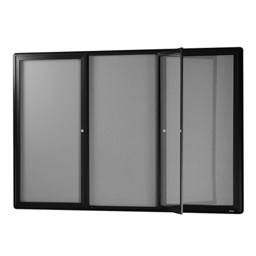Visionchart Be Noticed Hinged 3 Door Notice Case 1830W X 48D X 1220Mmh Black/Grey Fabric