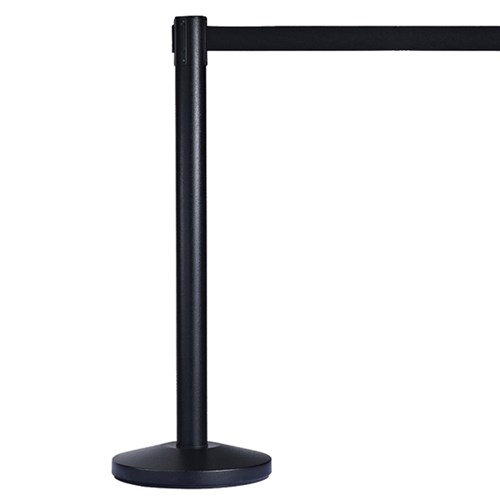 Retractable belt stanchion with 2m long belt make it easy to control crowd movements. Matte Black Stanchion with Black Belt A4 insert sign tops available to match
