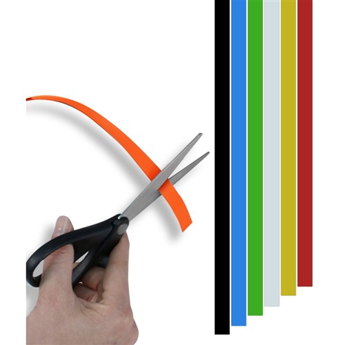 Magnetic Strips with a writable surface - the perfect blend of functionality and creativity for your whiteboards and metal surfaces. Elevate your classroom with a range of colorful magnetic solutions designed to bring a pop of color to any space. Can be cut to any shape with a sharp knife or scissors to suite your special requirements and can be written on with permanent or water based markers. Magnetic backing, writable front surface. Strips are 300mm long and are also available in widths of 13mm, 19mm and 25mm. Also available in Black, Blue, Green, White, Yelow, Red and Orange.