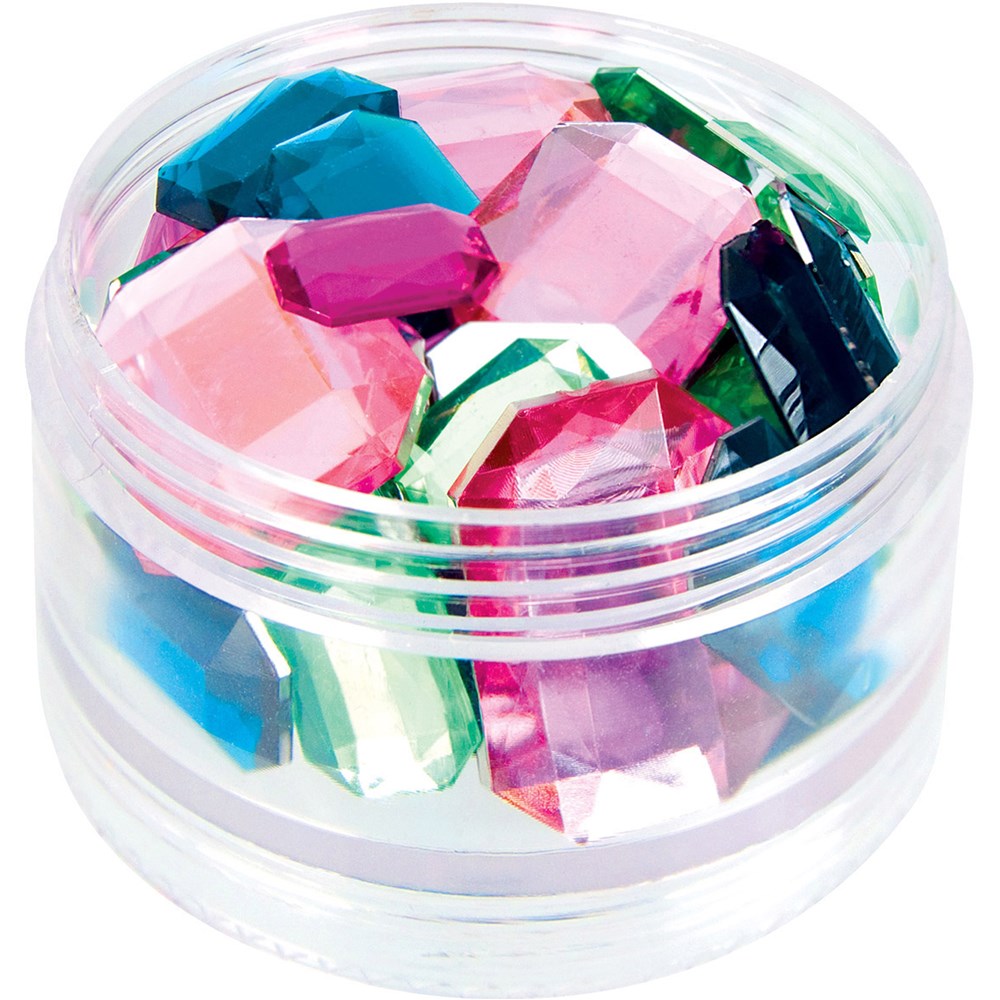 • This jewel selection contains an assortment of shapes in bright colours.
