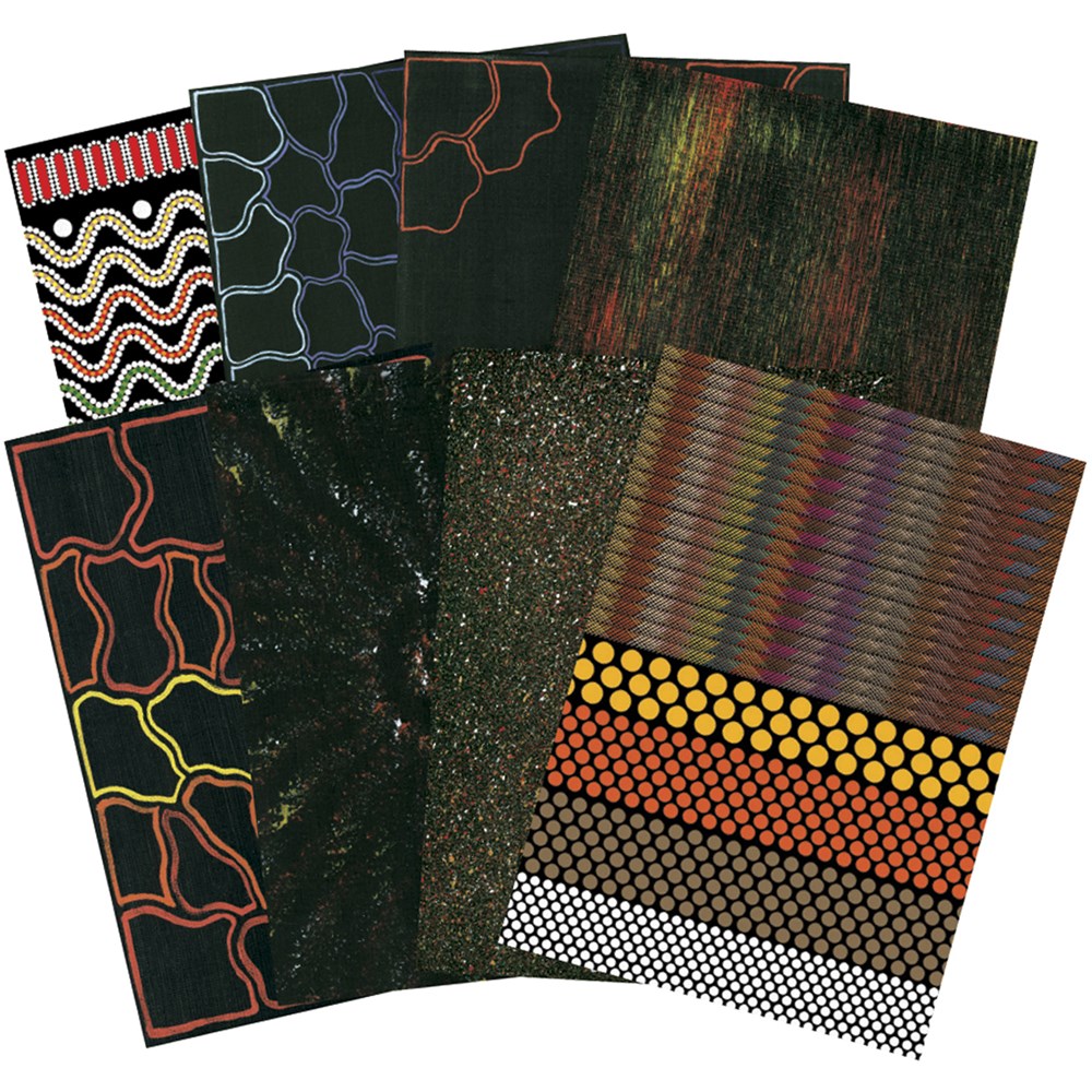 8 Indigenous designs. Full colour. Painted by Australian artist Peter Judda Mackay.